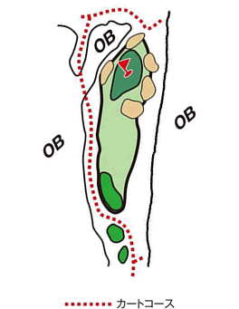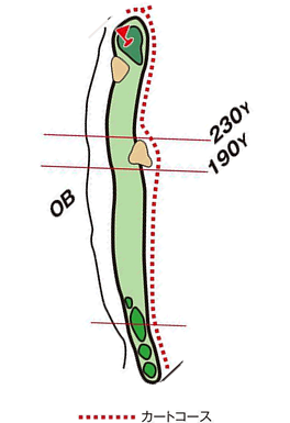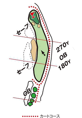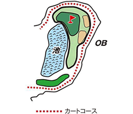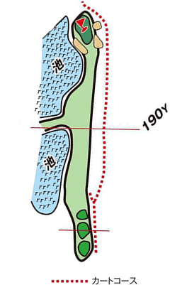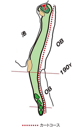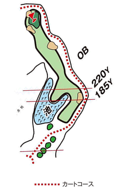 池越え、左ドッグレッグのロングホール