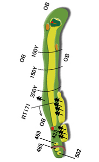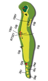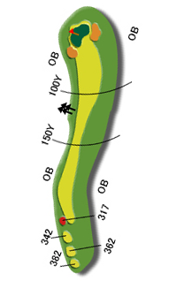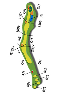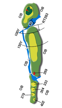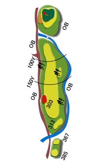 ティグランド前方の池及び左クリーク、右林はOB